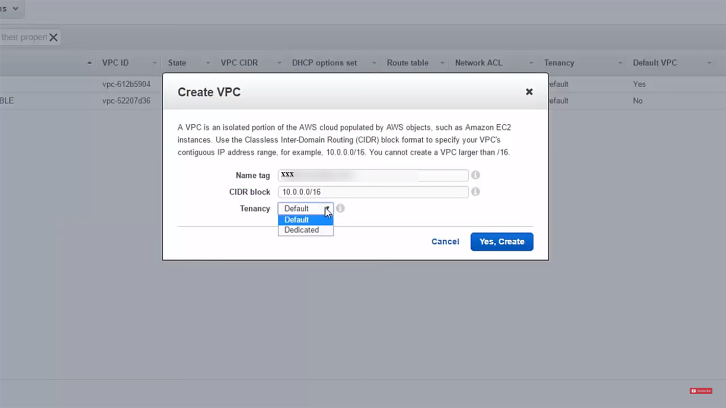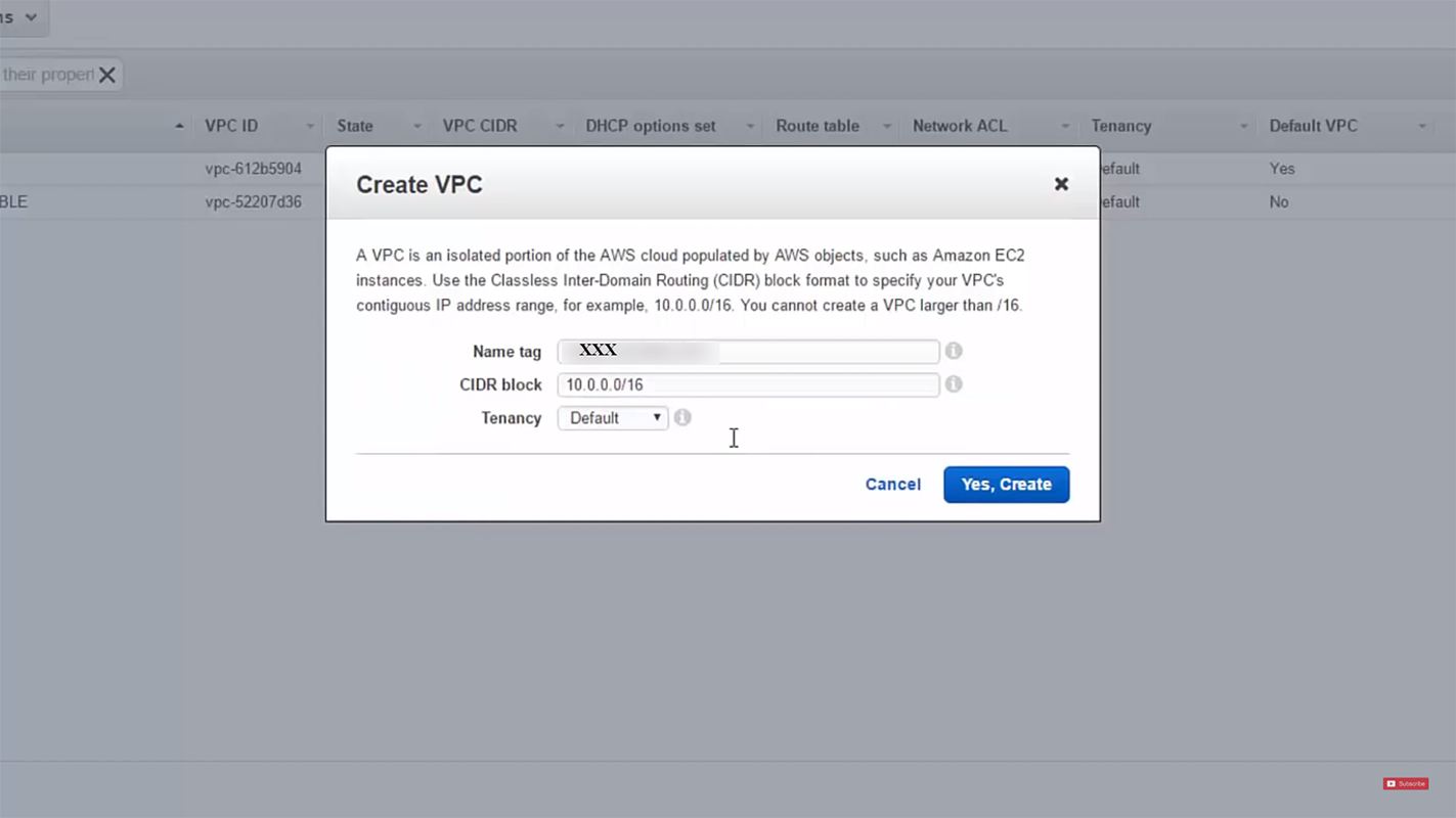 Step 5: Once you have entered all of the above fields, click Yes, Create. Wait for a few seconds and you will be able to see the VPC created in your dashboard. After creating the VPC, you can add one or more subnets to an availability zone.